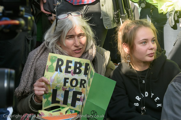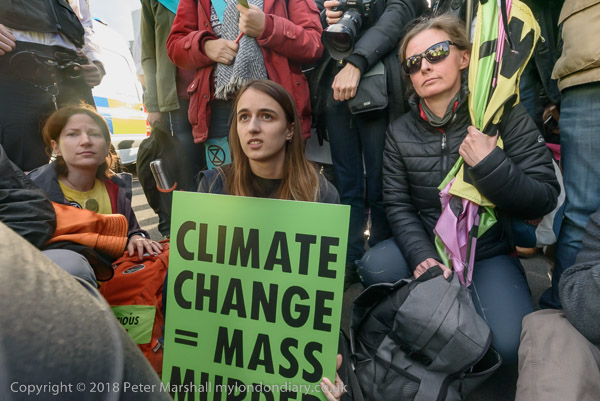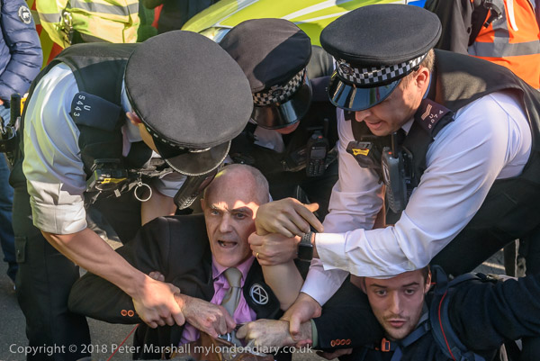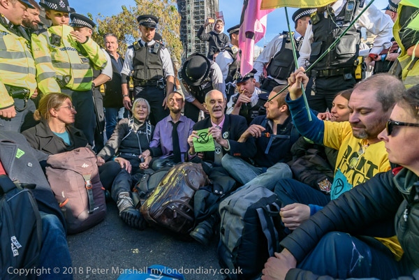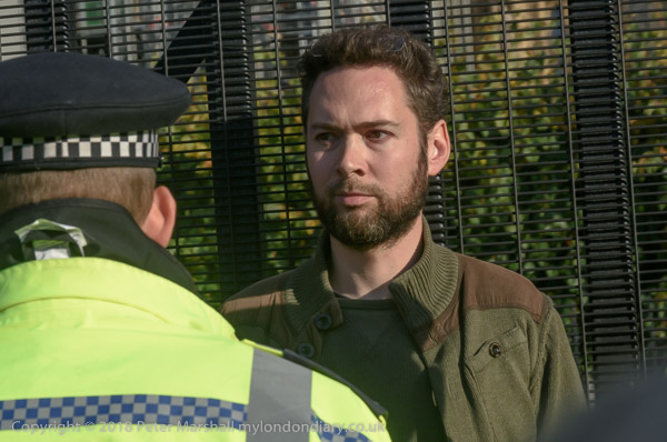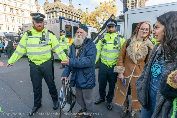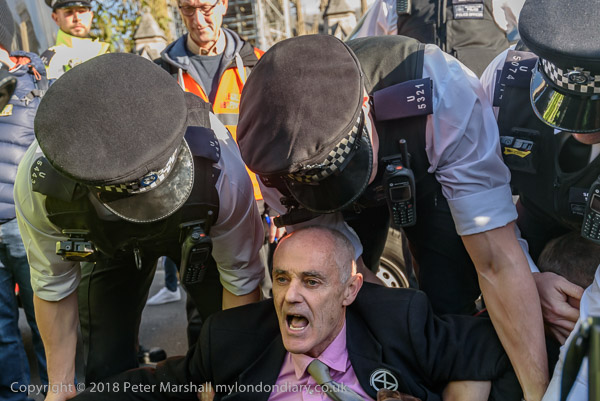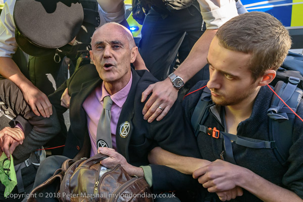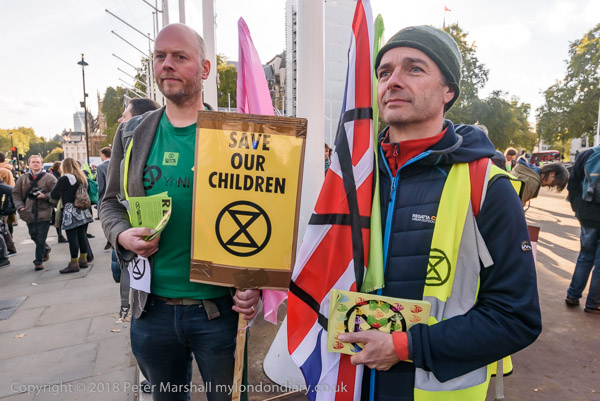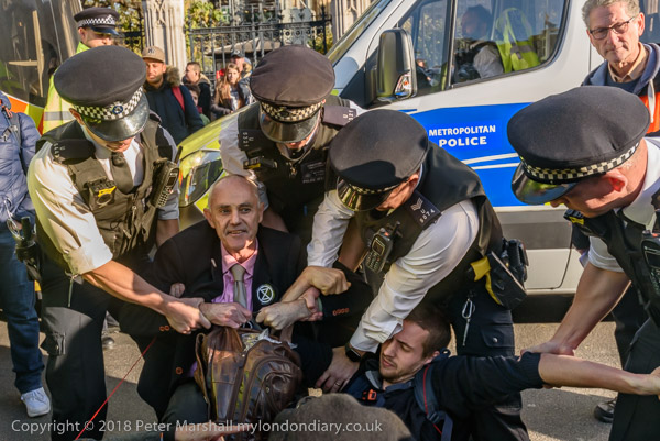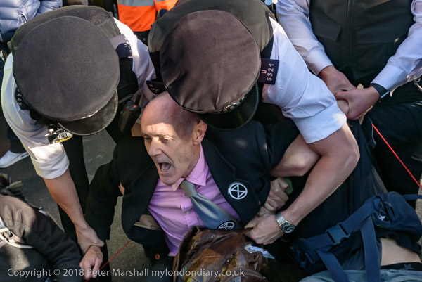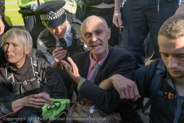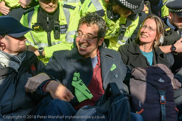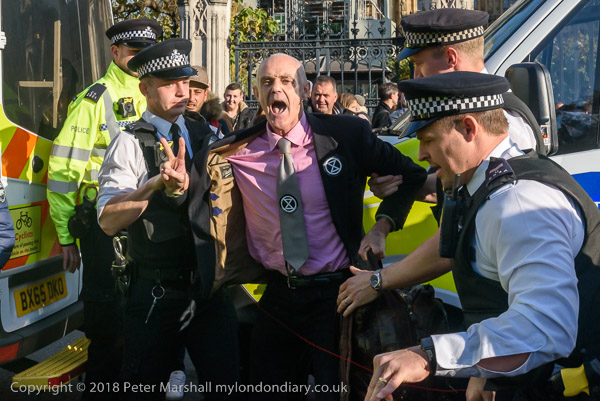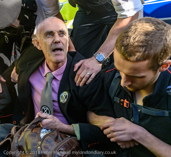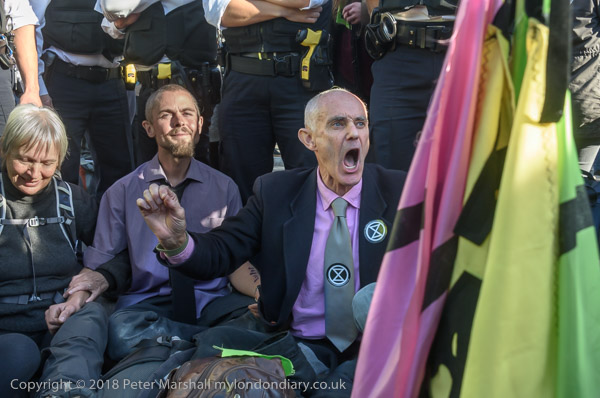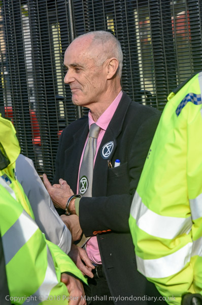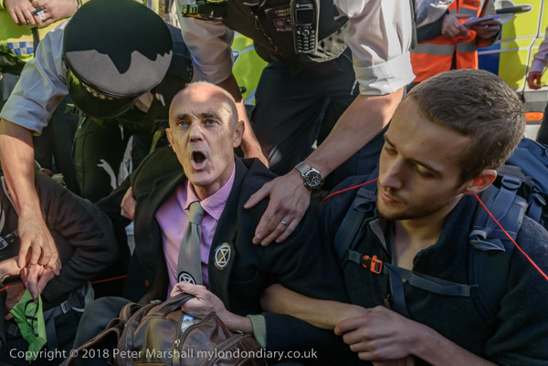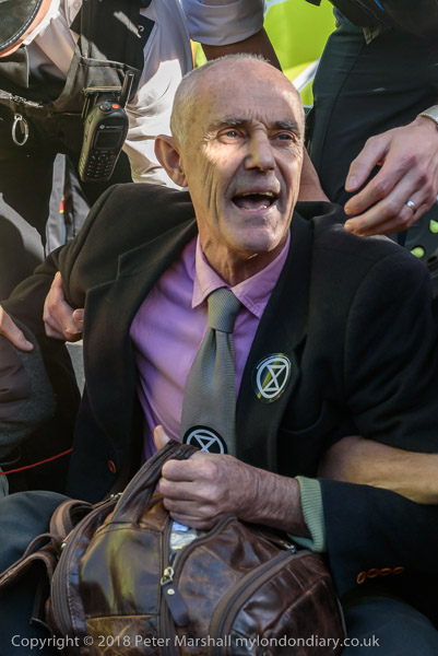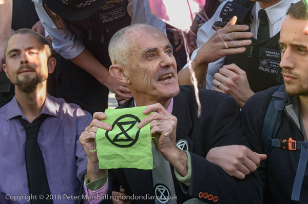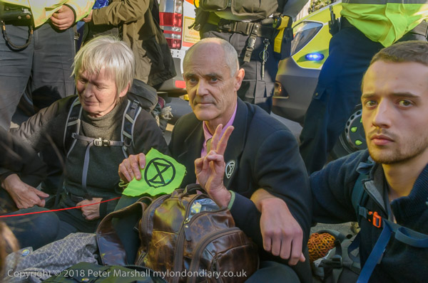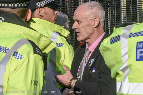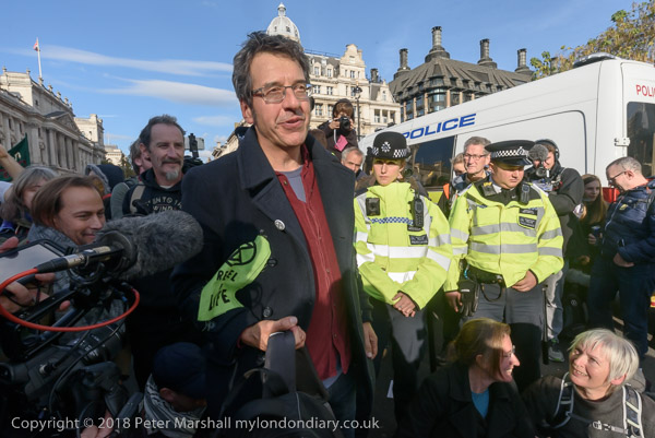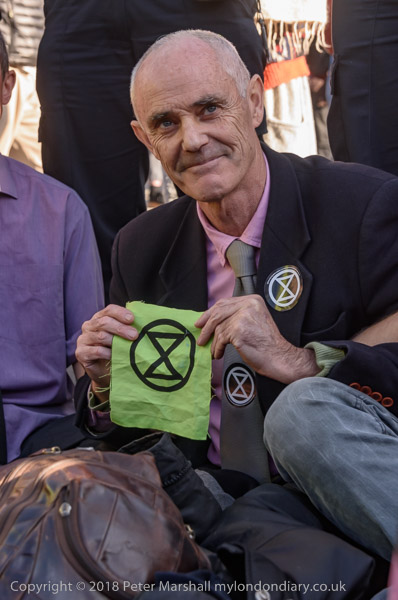 Donnachadh McCarthy holds up a small Extinction Rebellion flag in