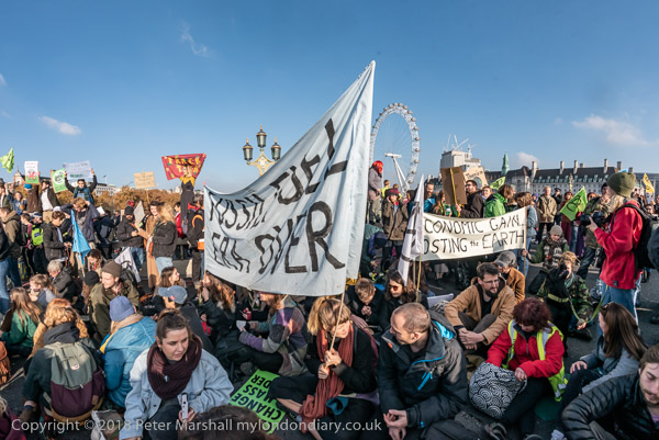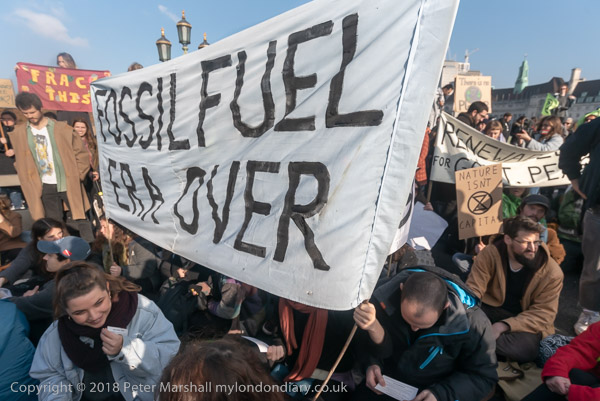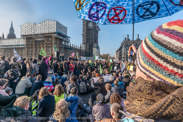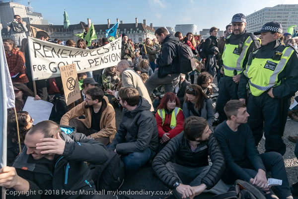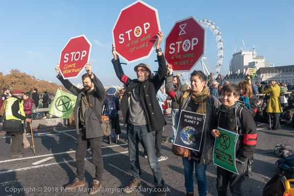 Extinction Rebellion is a non-violent rebellion - a sign with the