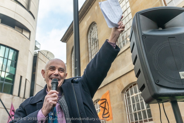 Sustaina Claus crosses fingers for the XR sign - Extinction Rebellion