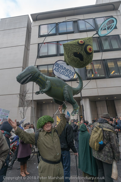 A dinosaur with the message 'Business as Usual'