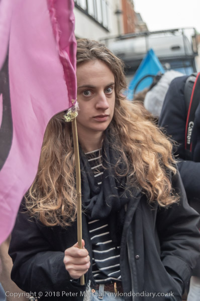 Protesters march around the corner to Wogan House and are held by