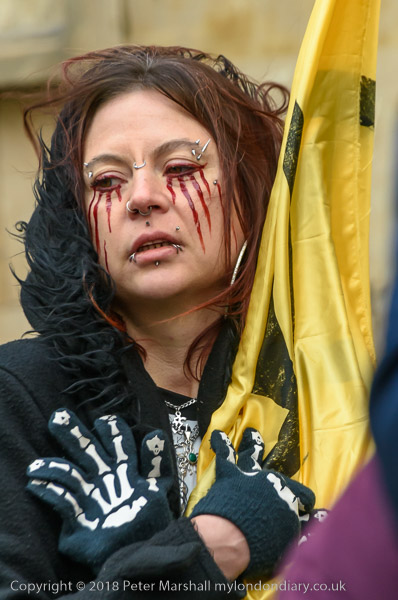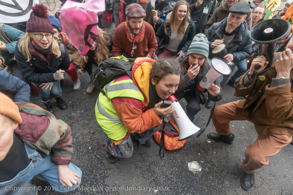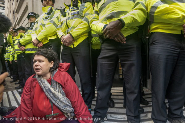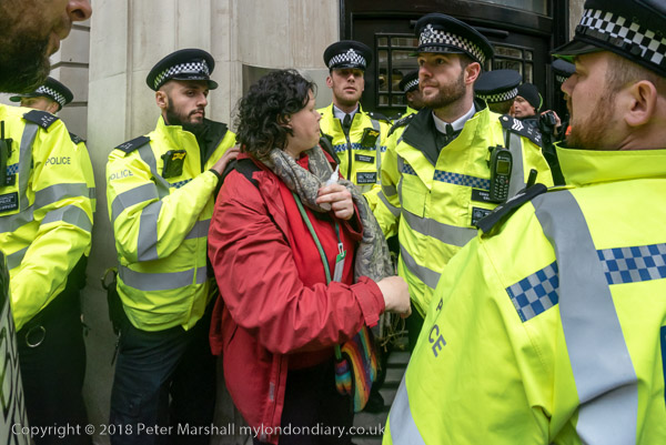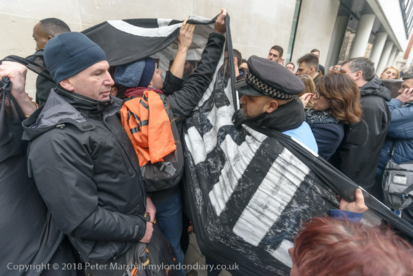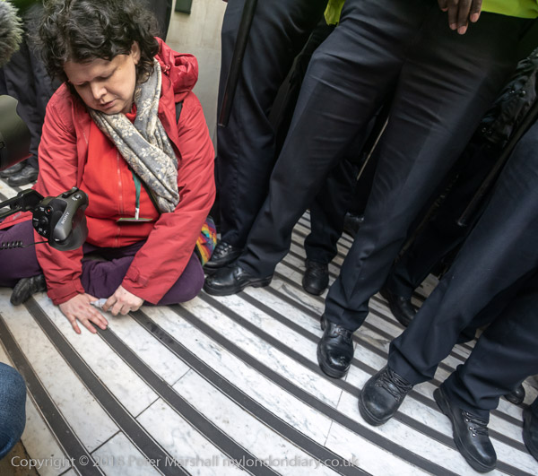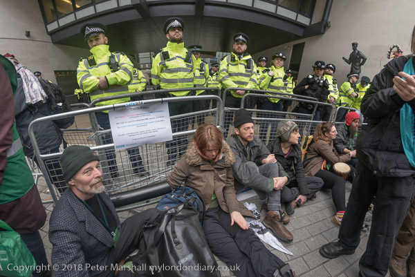'At the side entrance the sit down was continued by Dharma Action