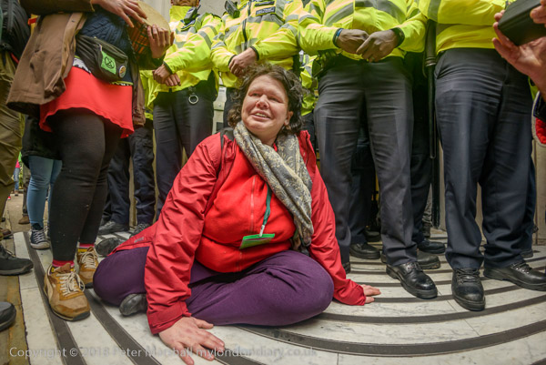 police. One managed to superglue himself to the door