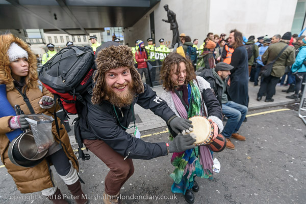 while other protesters drum and dance