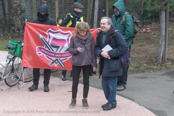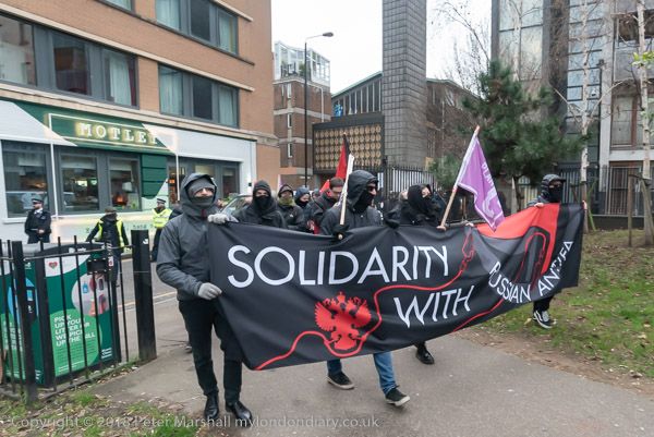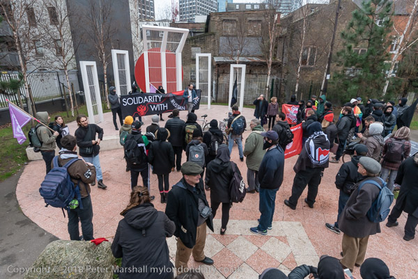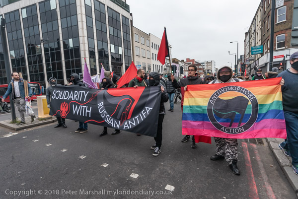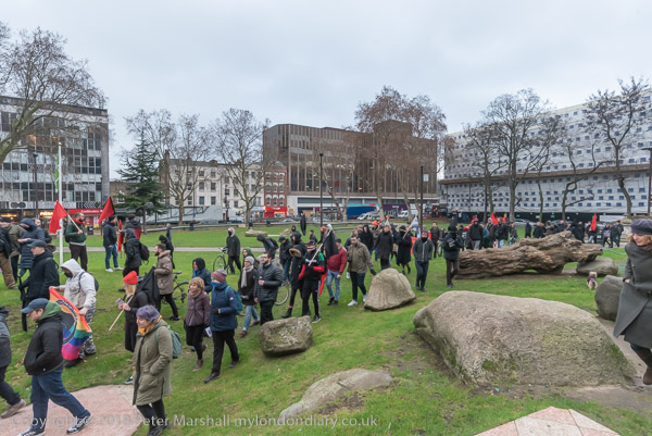 The front of the march, now accompanied by a large police force, enters
