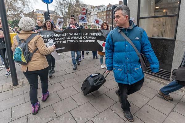 led by Dominic Dyer, on the way to the Japanese Embassy in Piccadilly