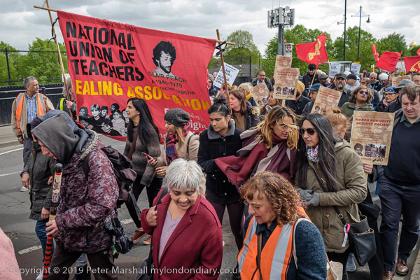 At centre foreground, Pragna Patel. Peach's murder inspired her to