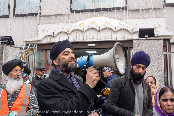 and halts outside the Ramgarhia Sabha Gurdwara which the Chaggar family