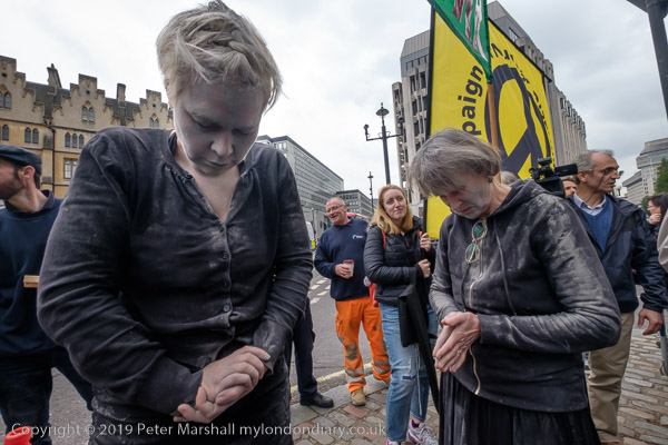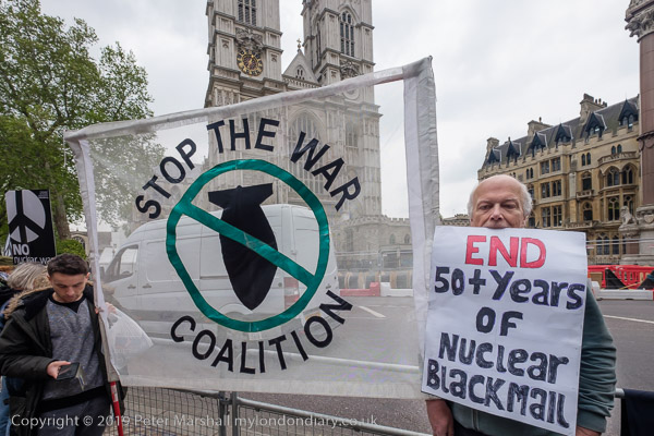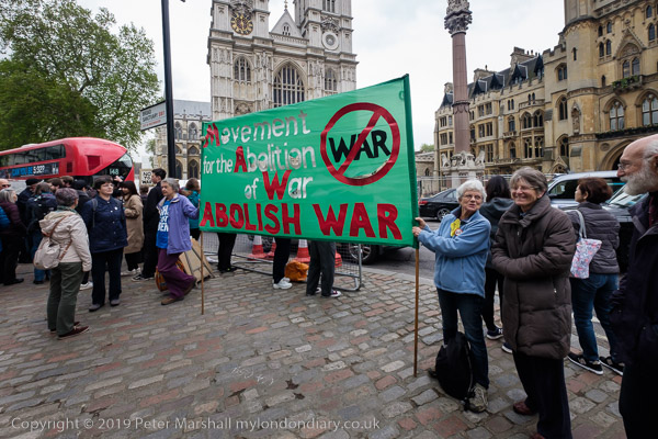 Movement for the Abolitoin of War banner in front of Westminster Abbey