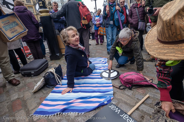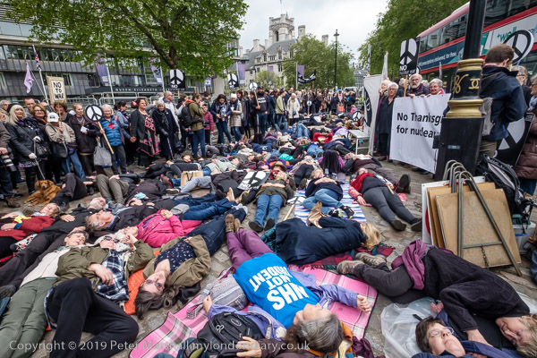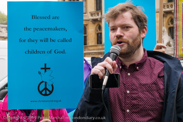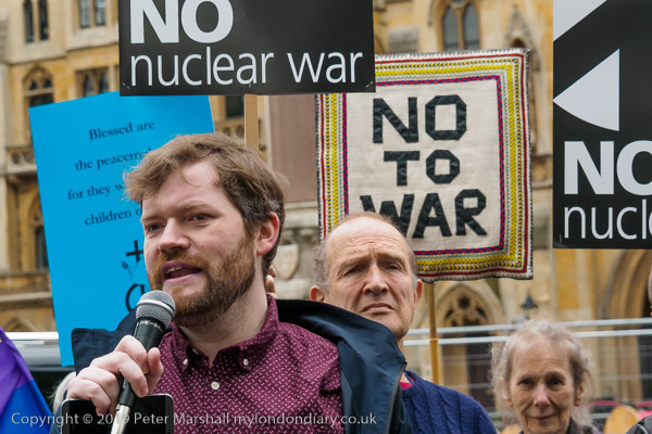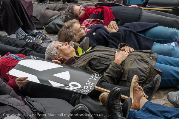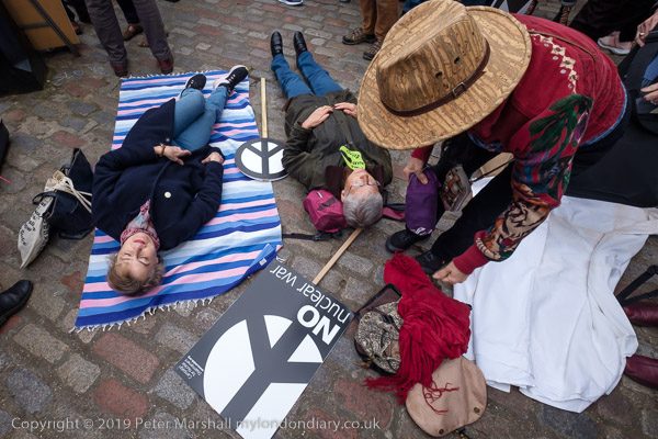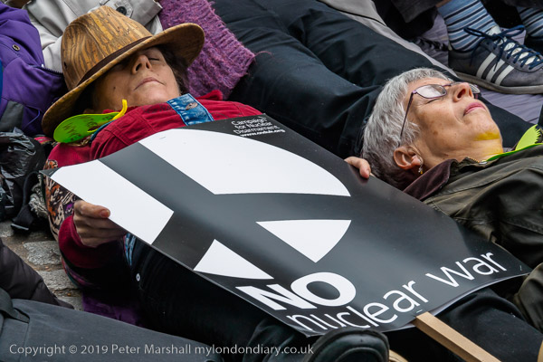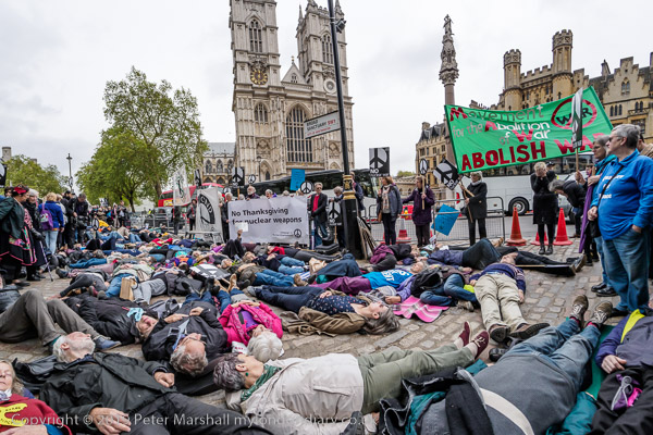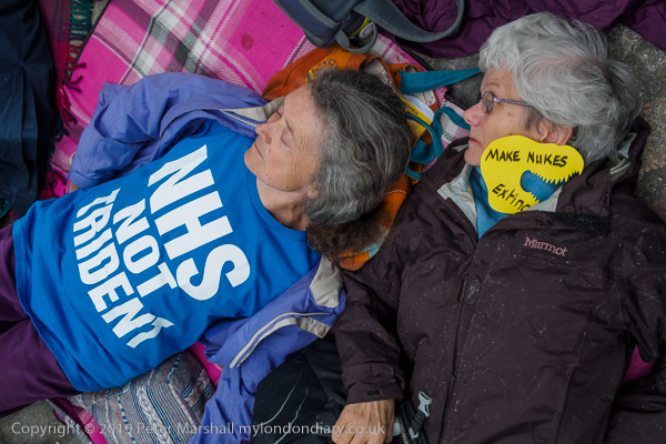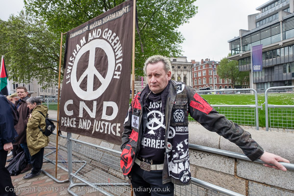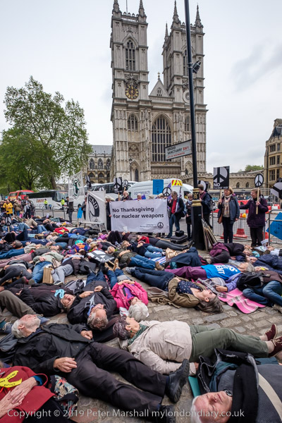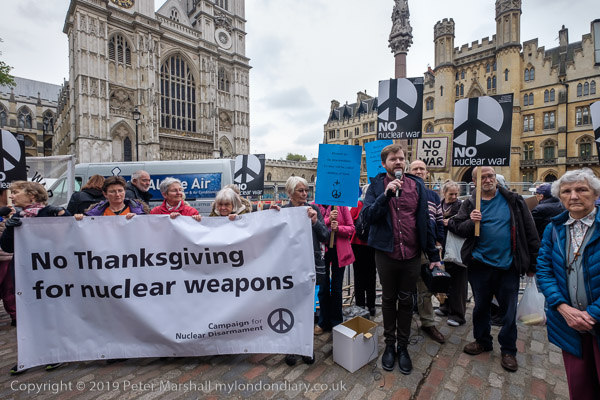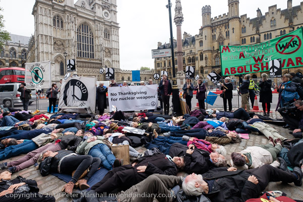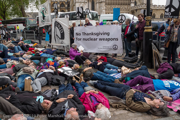 'No Thanksgiving for Nuclear Weapons' states a CND banner