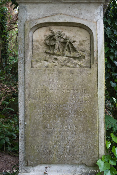 Right: 'Henry Orfeur, lost with all the crew, by the wreck of the