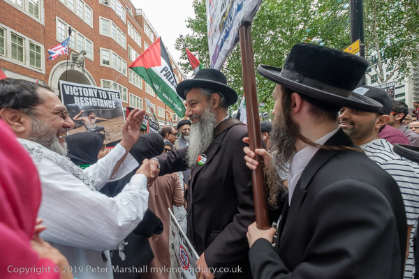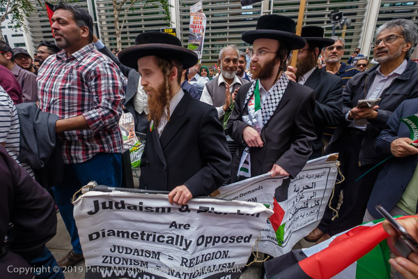 Neturei Karta ultra-orthodox Jews arrive to join in the protest