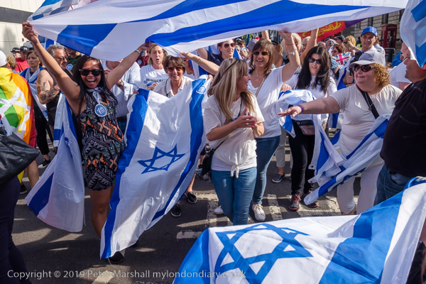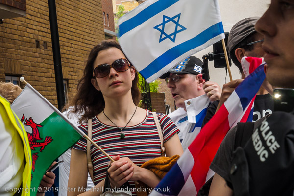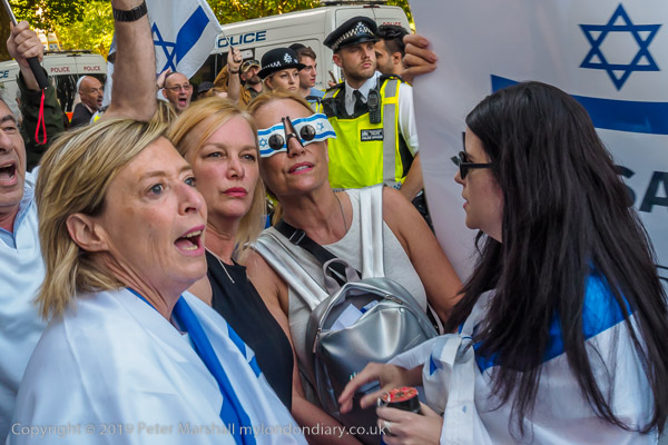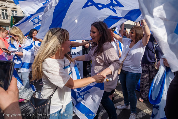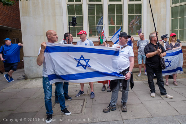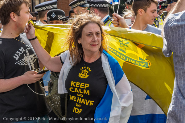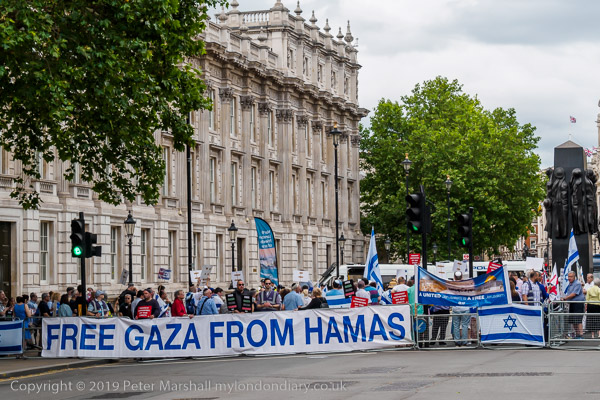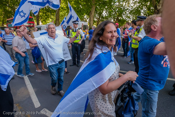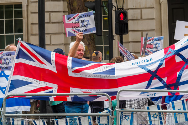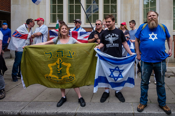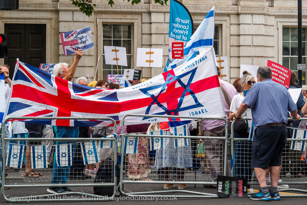 The more organised Zionist rally was waiting close to Downing St where