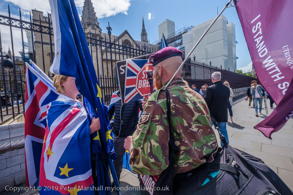An extreme-right protester carrying an 'I stand with Soldier F' flag