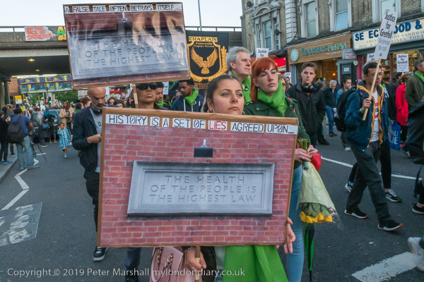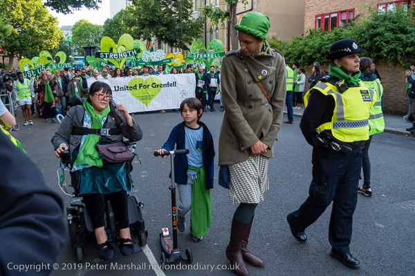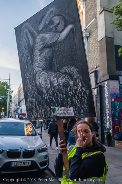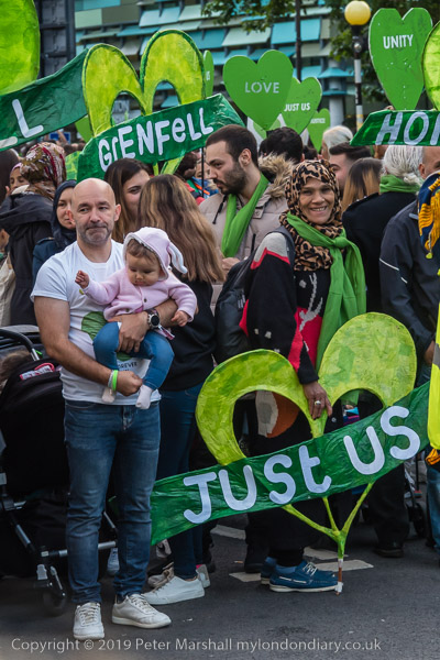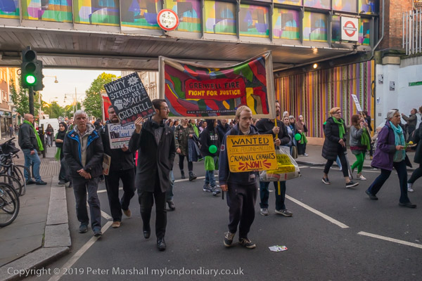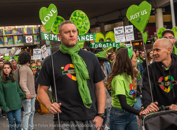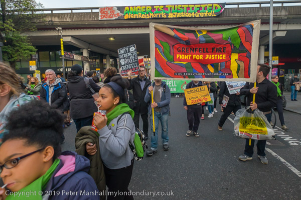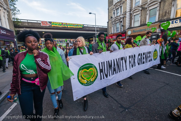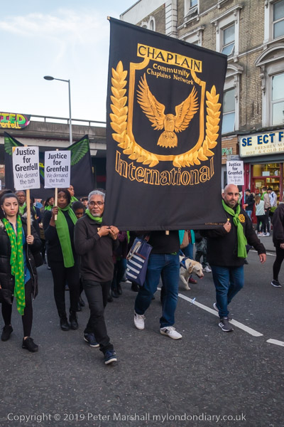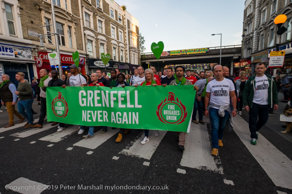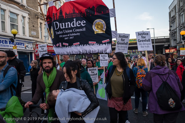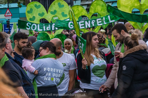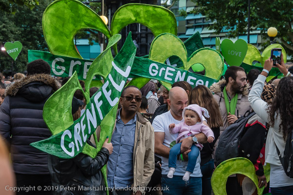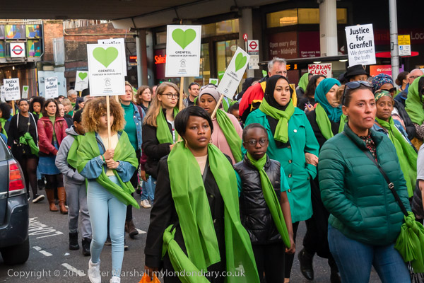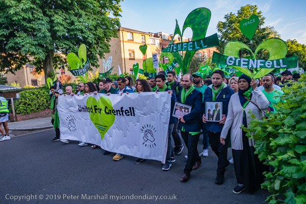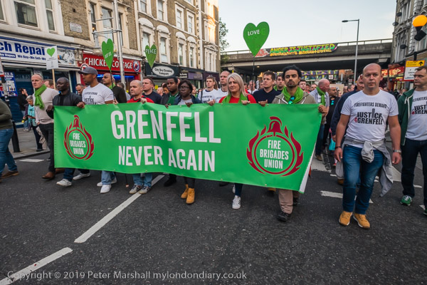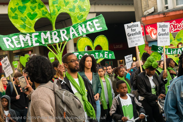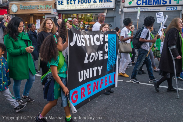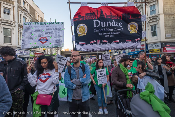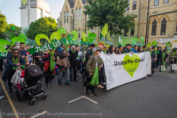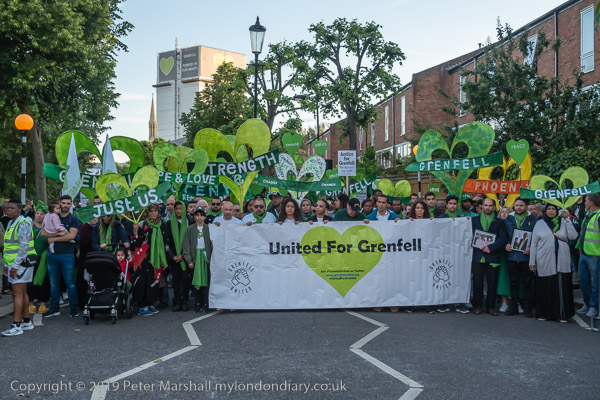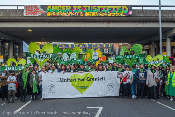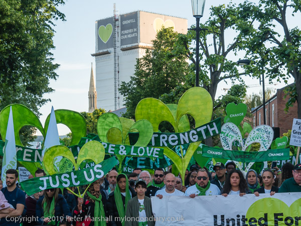 The banner 'United for Grenfell' at the front of the march with Grenfell