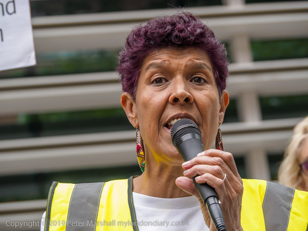 Moyra Speaks outside the Home Office, now also home to he Ministry
