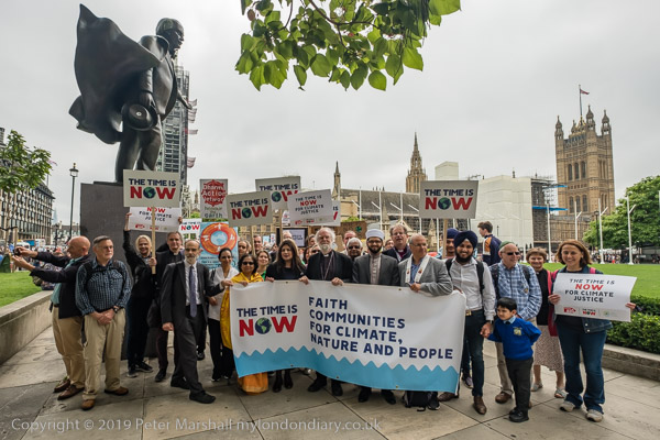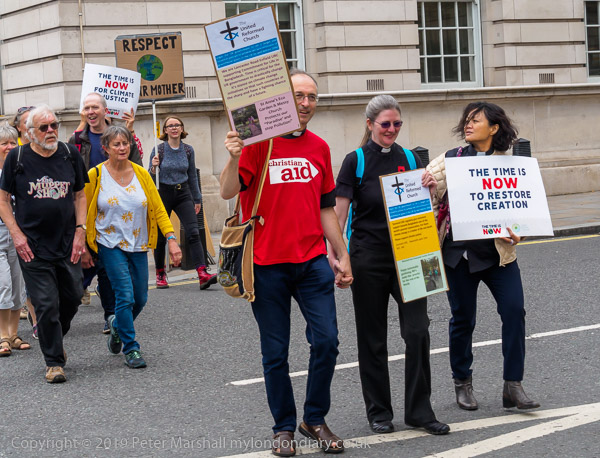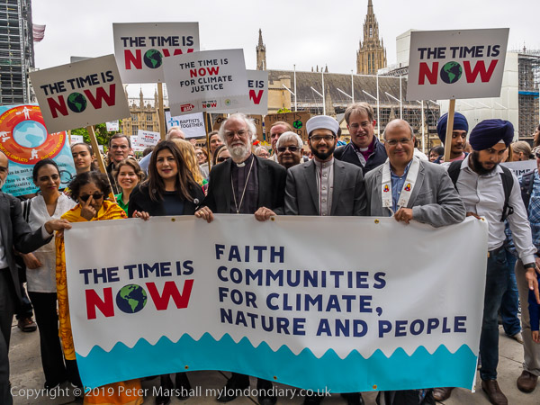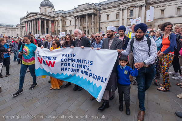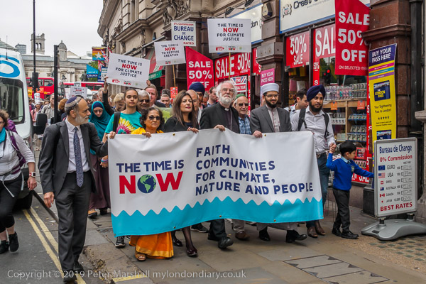 The march sets off with faith leaders holding the banner