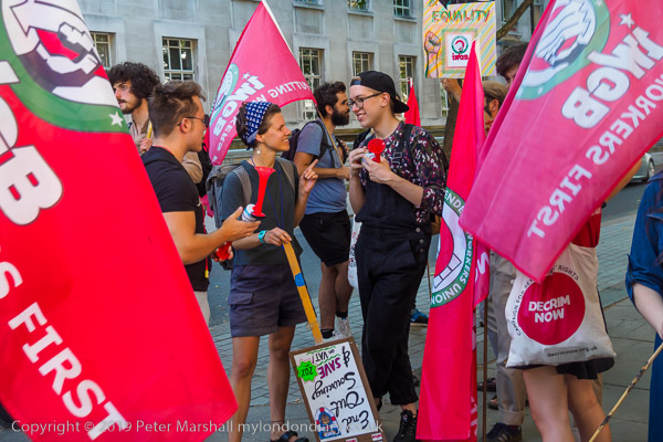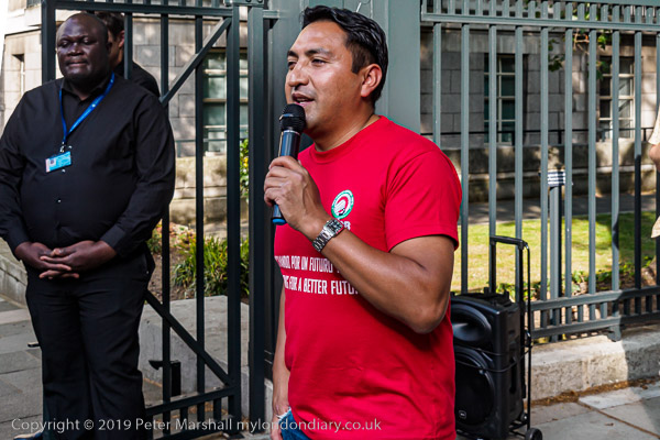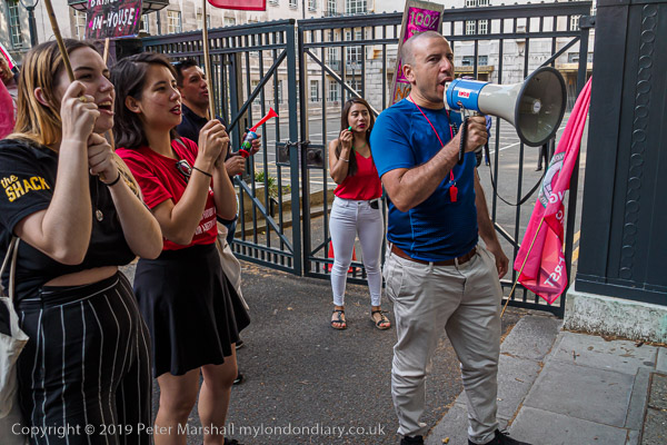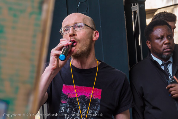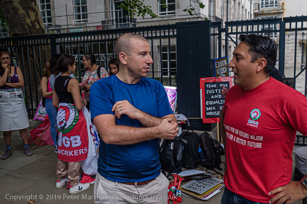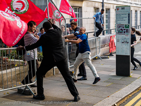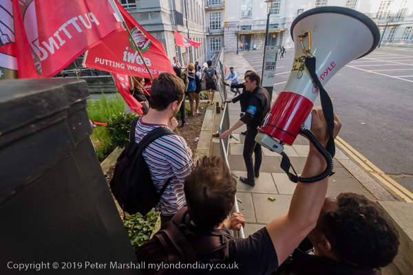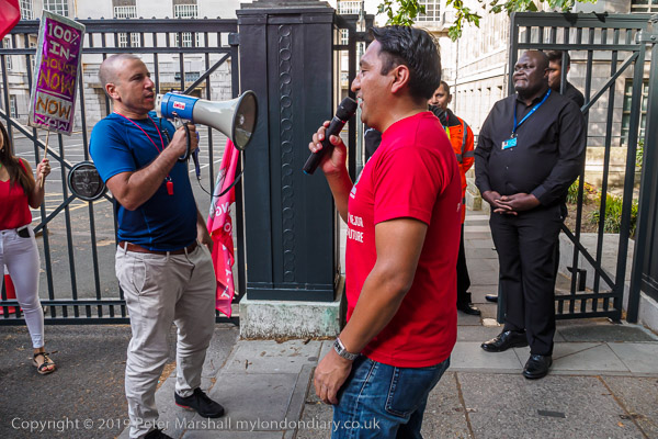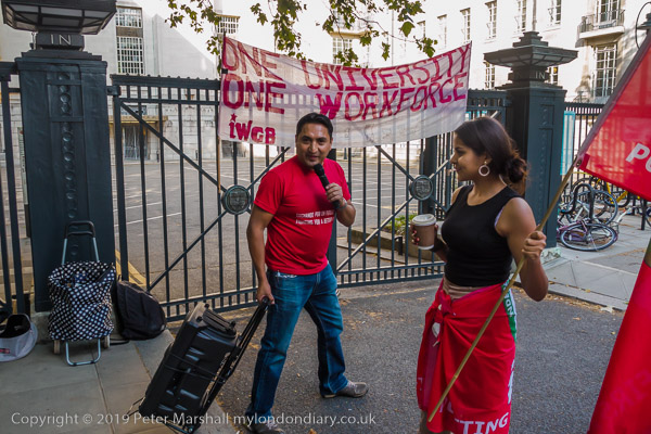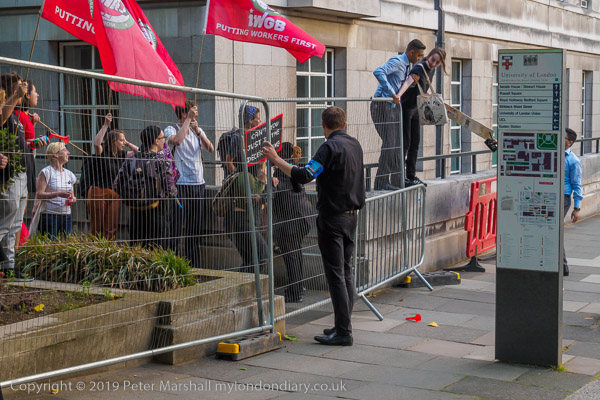 Jason and Henry speak outside the main gate to the Senate House yard.