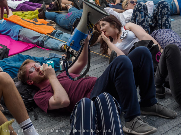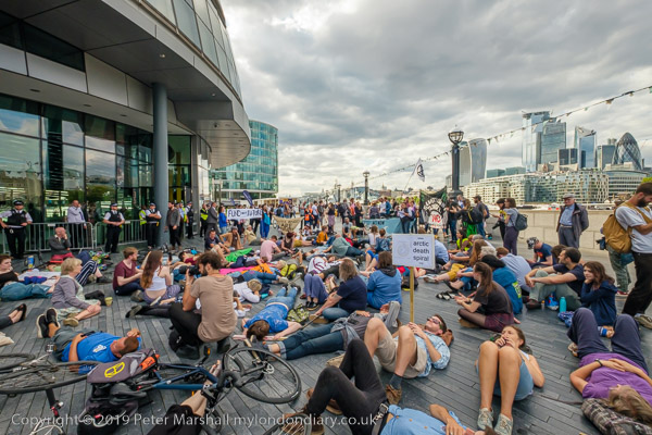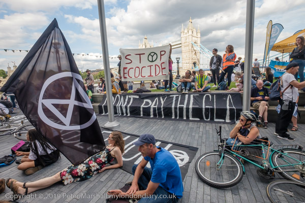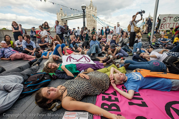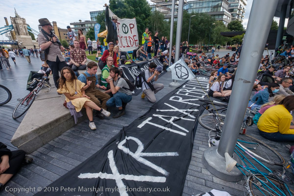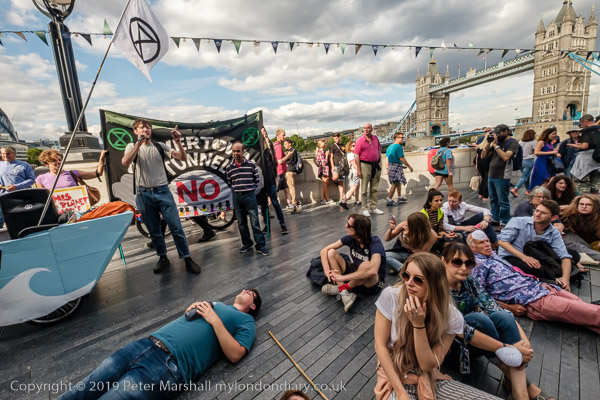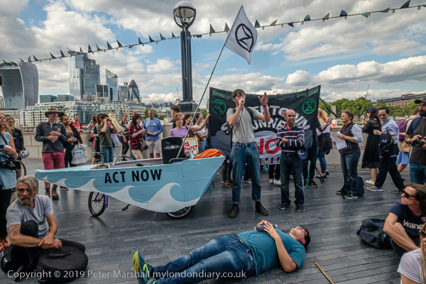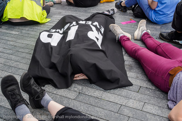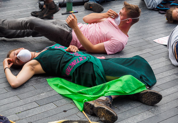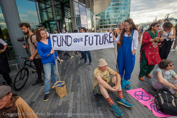 'XR Tax Rebellion' banner, die-in and City Hall