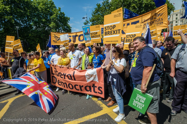 Liberal Democrats with very boring 'Stop Brexit' placards. Surely