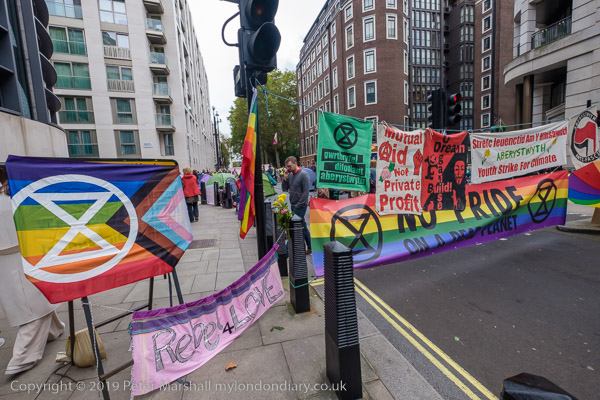 Horseferry Road is blocked by banners