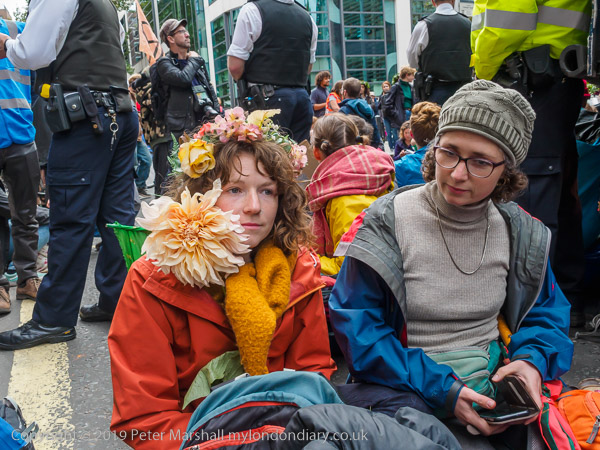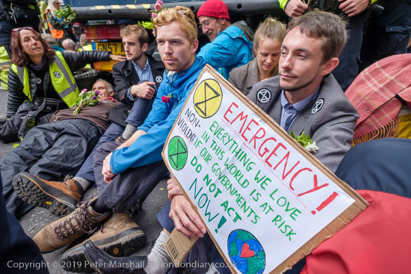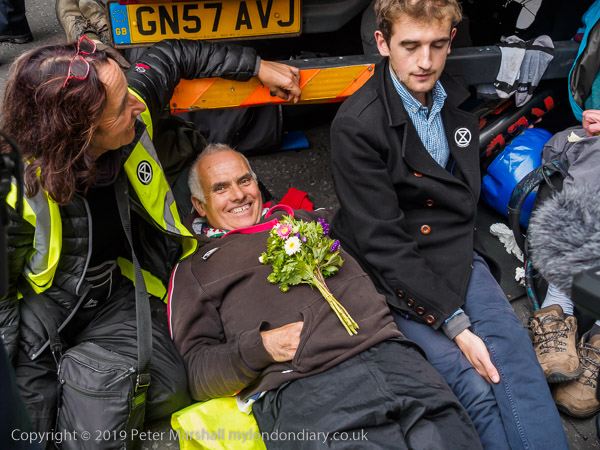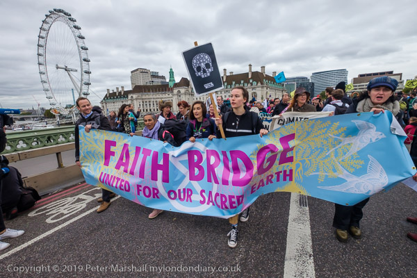 At the Lambeth Palace end of Lambeth Bridge faith groups are blocking