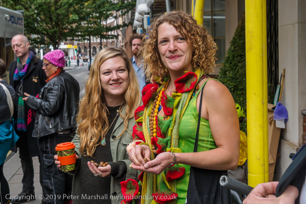 Two women are handing out acorns. I tell them Chris Packham has already