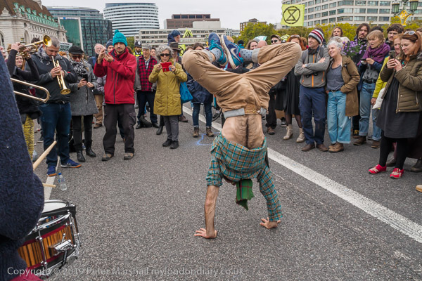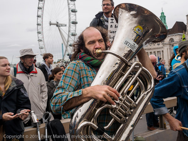 and a jazz band is playing on Westminster Bridge