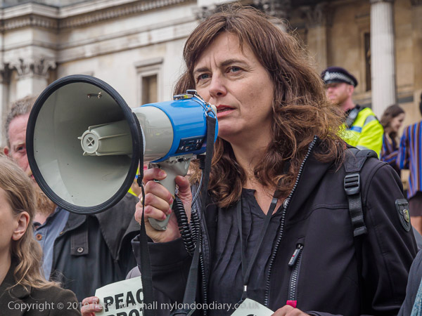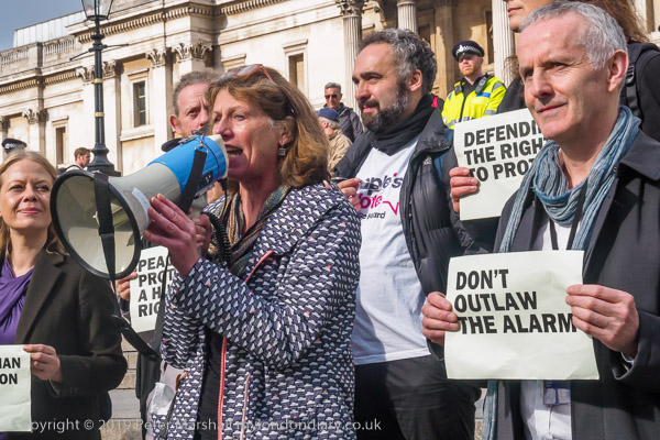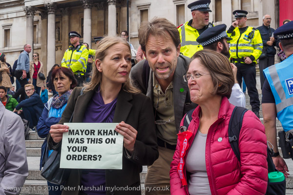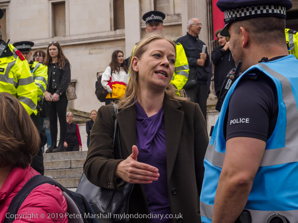 Sian Berry speaks to a police officer