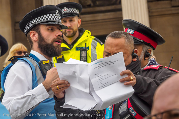 Police and Heritage Wardens read through the Trafalgar Square bylaws