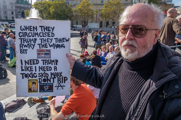 Angela Zelter with a poster 'Freedom of Speech and Association Are