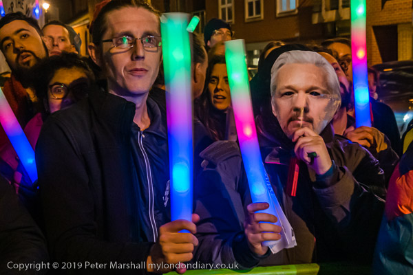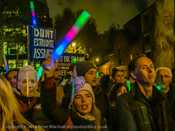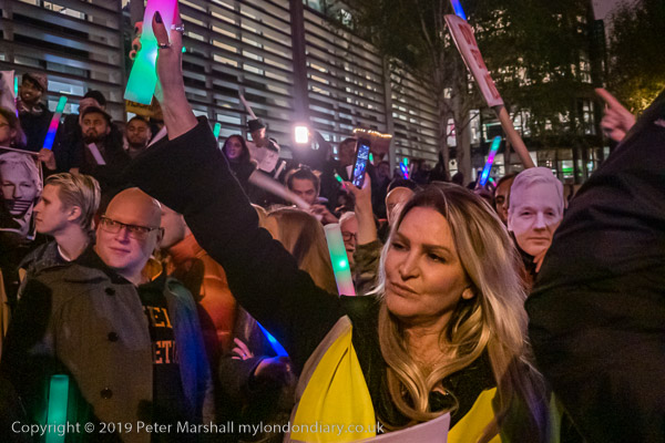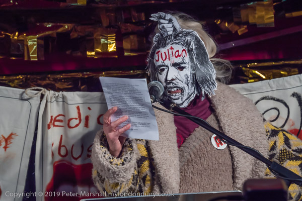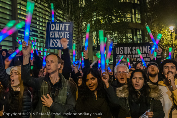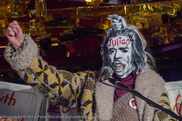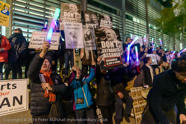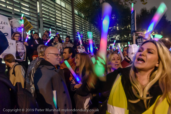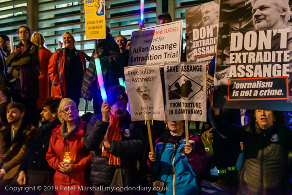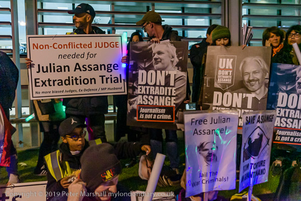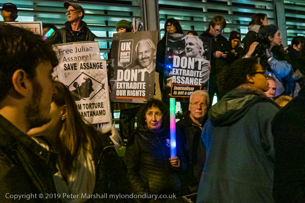 Protesters and speakers complained that the judge at Assange's hearing