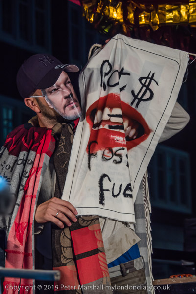 Vivienne Westwood wears a mask to read her speech about Assange
