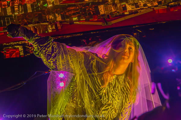 most of the time she was bathed in flashing purple and green lights