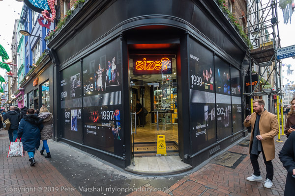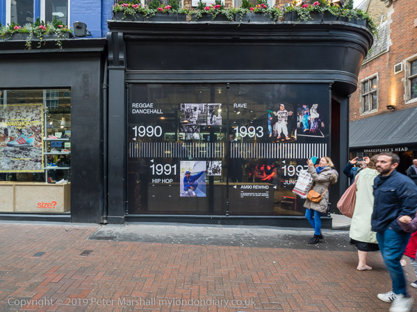 The Carnaby window of 'Size?' with my pictures at top left from Notting