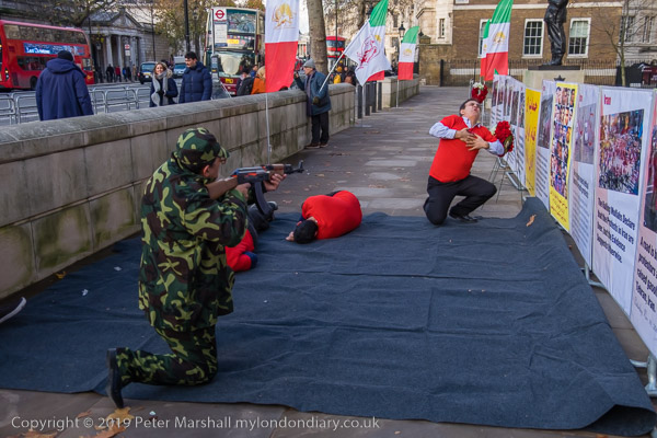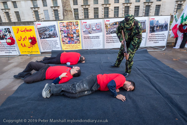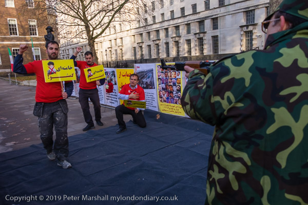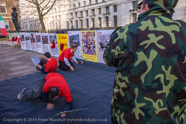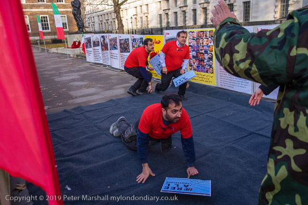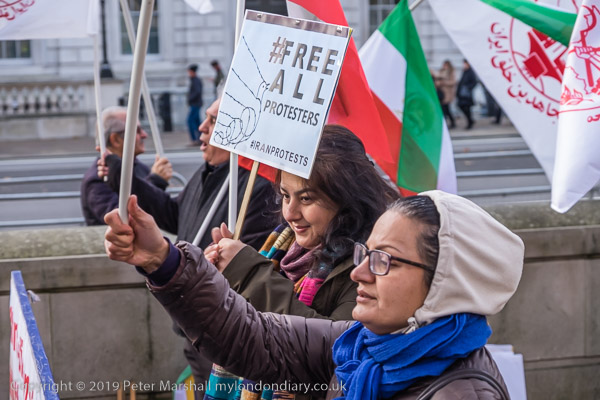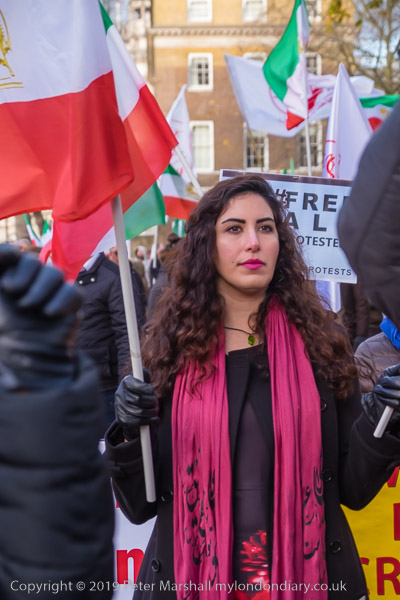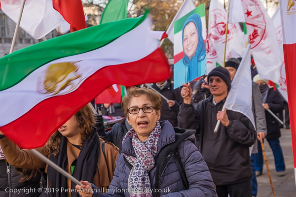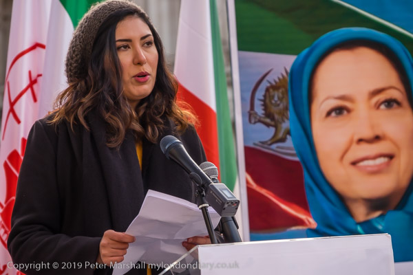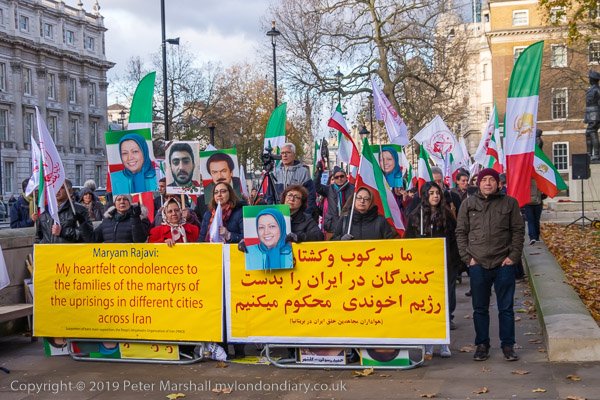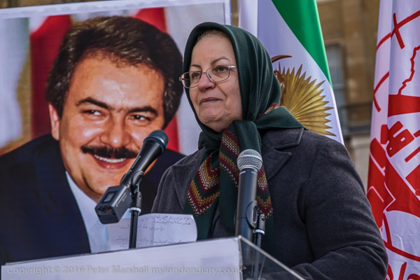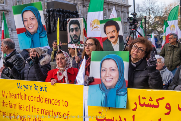 PMOI leader Maryam Rajavi (in blue on the posters) has made a statement