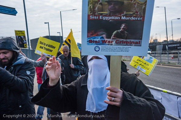 Egyptians for Democracy UK protest against President Sisi outside the UK-Africa Investment Summit in North Greenwich while other came to welcome him.