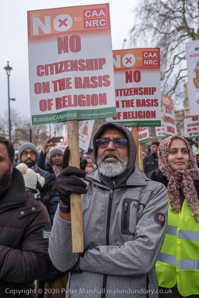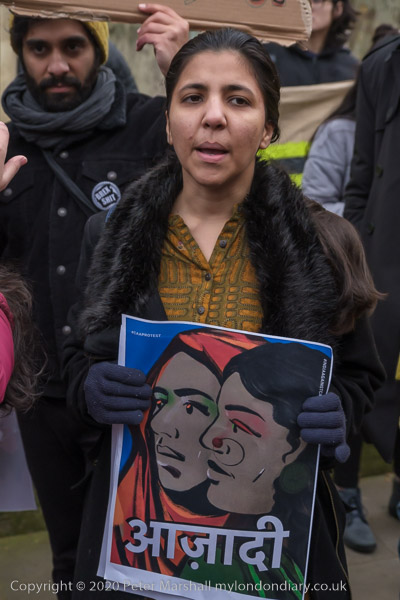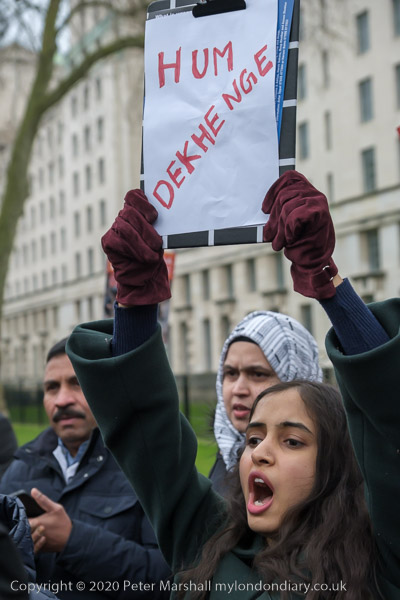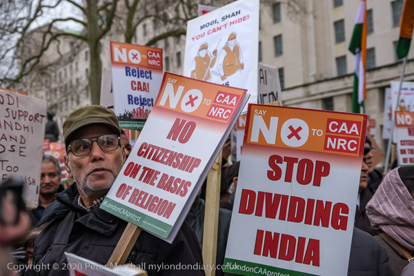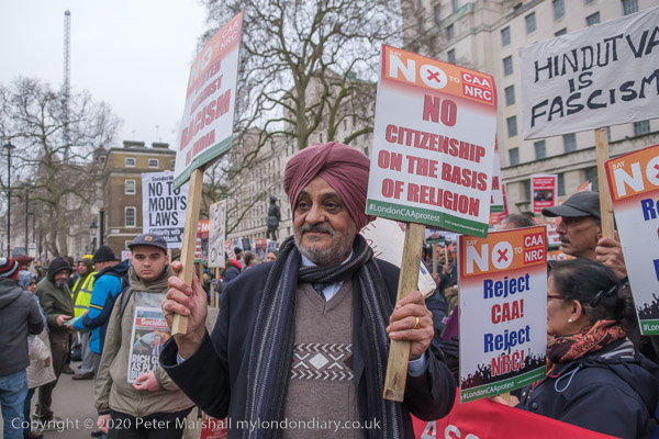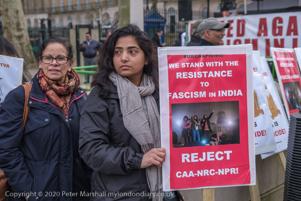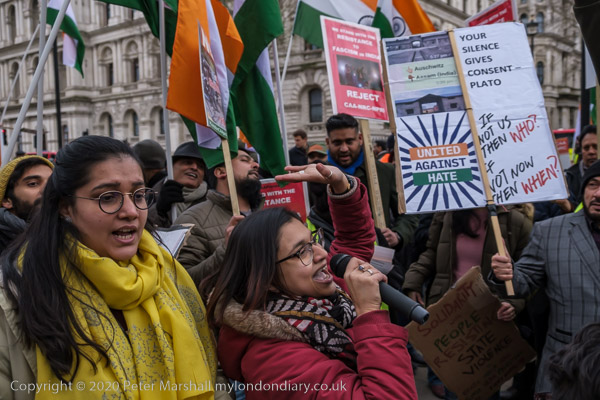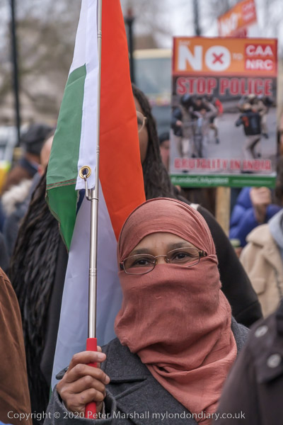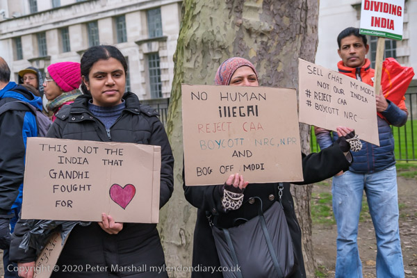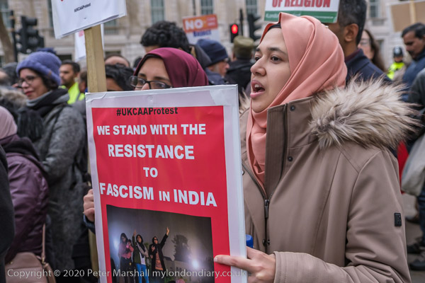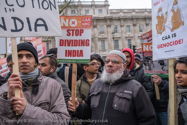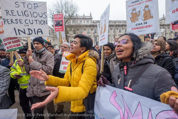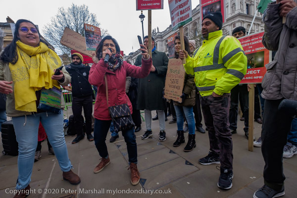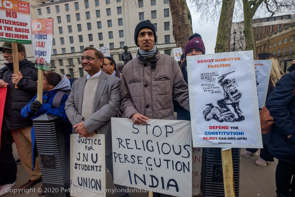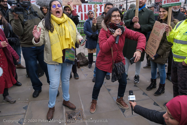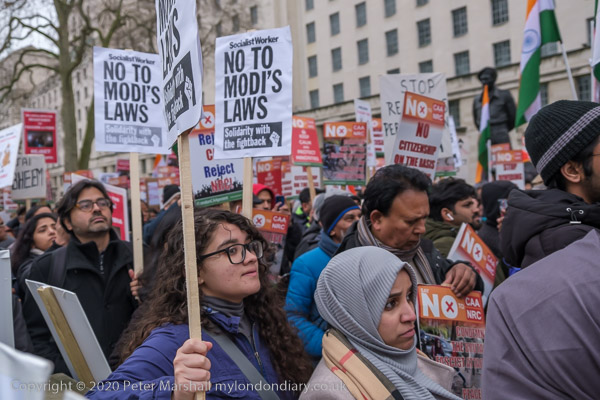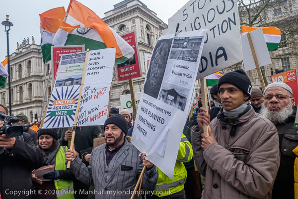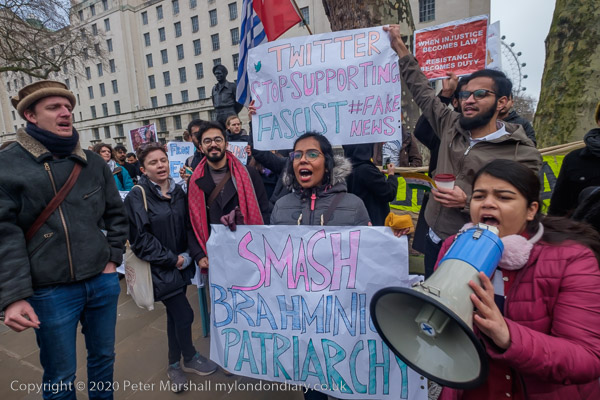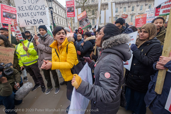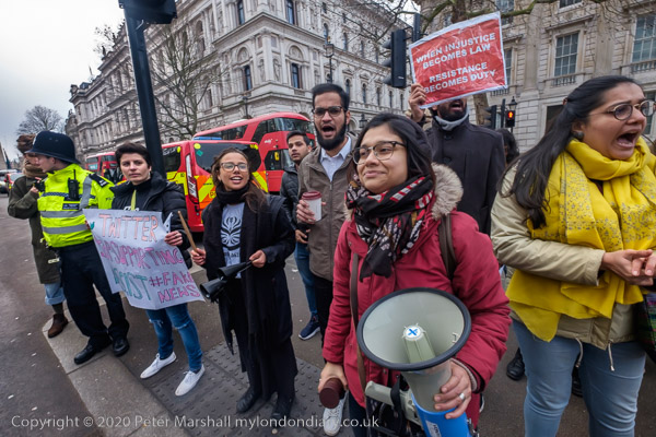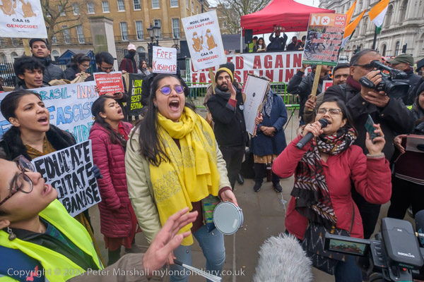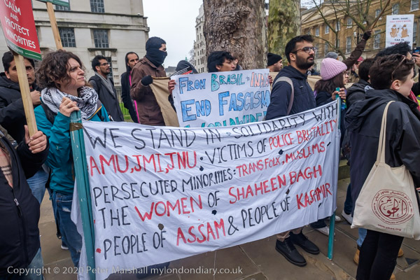 A large crowd, mainly of Indians, has gathered opposite Downing St