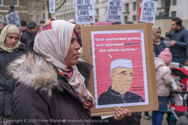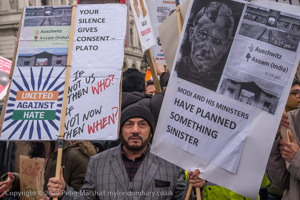 Some placards compare Modi and his plans with Hitler and the Nazis,