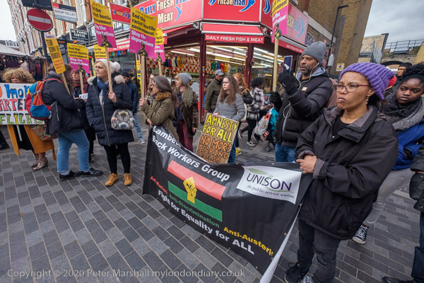 The protest was organised by MfJ and Lambeth Unison Black Workers